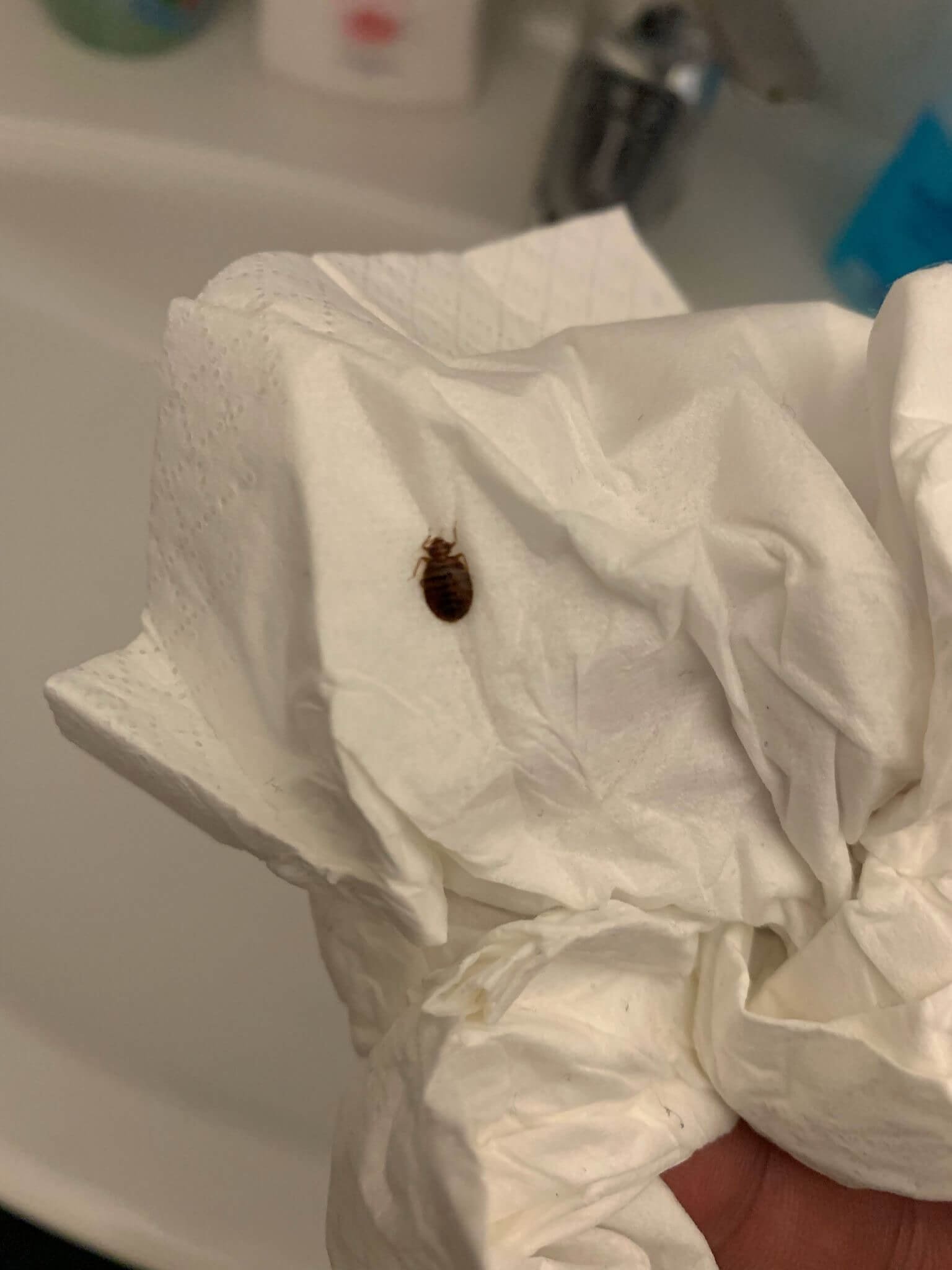 - Sichtbare Tiere: Während des Tages sind Bettwanzen selten sichtbar, aber gelegentlich können Sie sich hinter Bettgestellritzen, Nähten oder Teppichkanten verbergen.